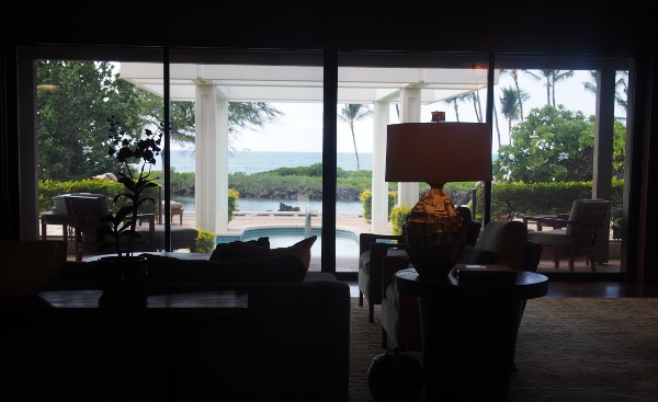 リビングの大きな窓からは、プライベートプールと美しい海が見えます♪窓を開けてあげれば、リビングでのんびりとおしゃべりをしているだけでも、ハワイの風を感じながら楽しく過ごせそうです。