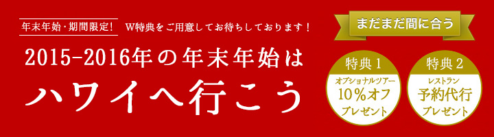 みなさまの年末年始ハワイ旅行を2大特典も応援いたします!よりいっそう満足のいただけるハワイ旅行になること間違いなしです♪♪
