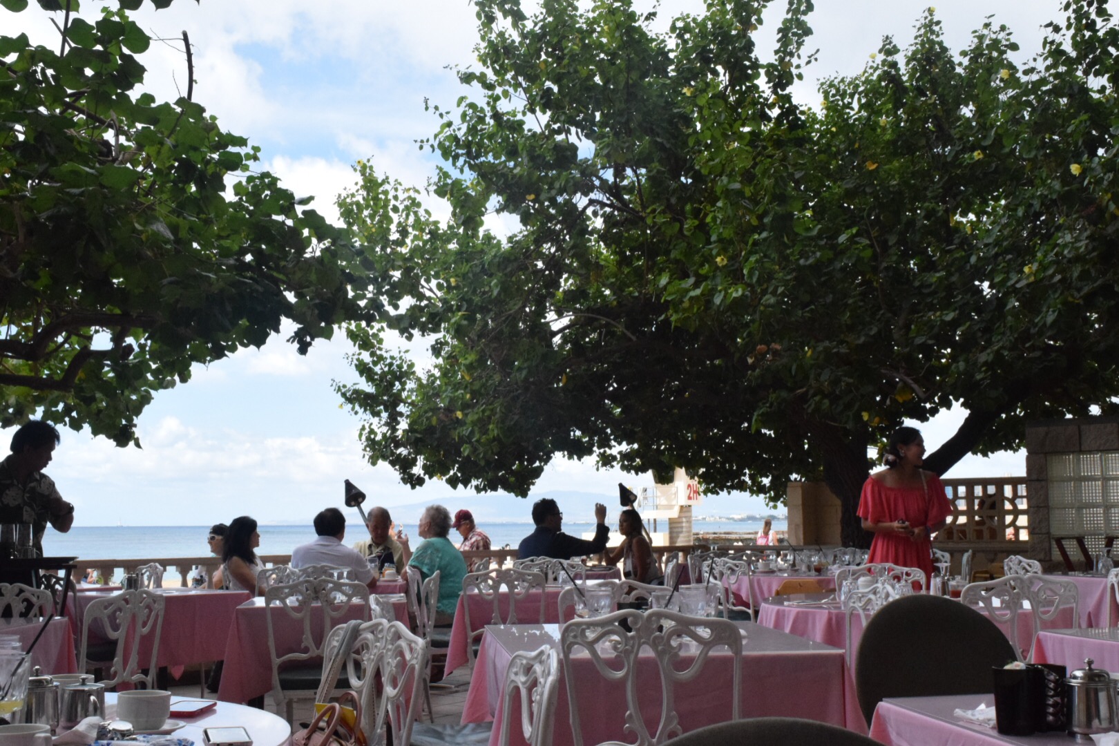 レストランの色調は、エメラルドグリーンの海や大きなハウツリーの木に映えるピンク色。パラソルからテーブルクロスまですべてピンク色で揃えられています。どこを切り取っても絵になる、フォトジェニックな空間です。心地よい海からの風を感じながら、のんびりとハワイの景色に浸ってはいかがでしょう。