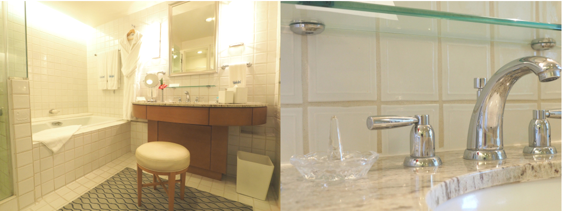 パーシャルオーシャンビューとは、洗面台の形が少し違いましたが、同じようにゆったりとしたつくりです。驚いたのが、洗面台に用意されていた指輪置きです!女性であれば1度は経験があると思いますが、指輪やピアスといったアクセサリーはとてもなくしやすいです。せっかく旅行に来ているのに、大切な指輪などをなくしてしまうとショックですよね...。一番なくす可能性が高い洗面台にこういったものが用意されているのは、本当に助かるなぁと思いました。ハレクラニは、ハネムーンや記念日でご宿泊される方も多いので、こういった細やかな対応が嬉しいですね♪