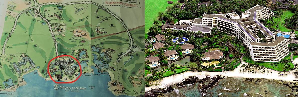 パワースポットとして知られる「マウナ・ラニ・ベイ・ホテル&バンガローズ」は、地図を見てわかるように非常に敷地が広いです。ホテルそのものは海の近くにあるので、すぐに海に遊びに行くことができます。