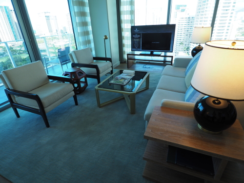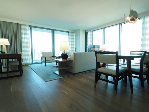 こちらは2ベッドルーム・デラックス・オーシャンビュー・スイートのお部屋。リビングがかなり広くゆったりとしたつくりになっています!床にスーツケースを置いても気にならない広さです。