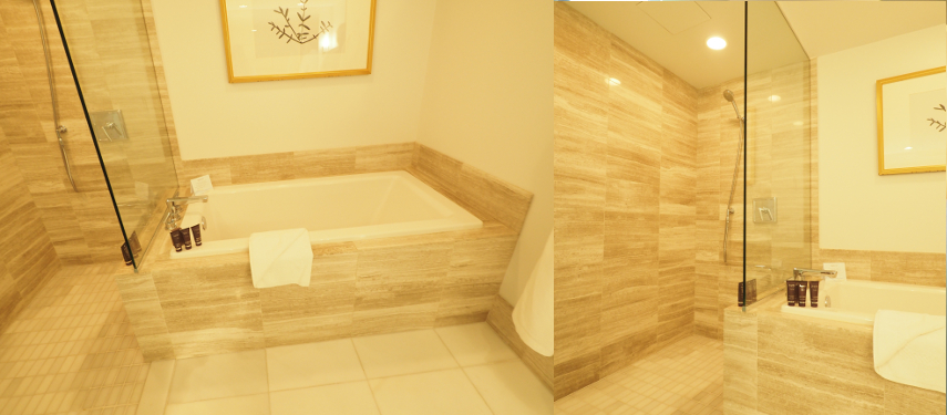バスルームには、バスタブとシャワーが並んであります。バスタブとシャワーがセットになっているわけではないので、のんびりお風呂につかったあとにシャワーに移動し、頭や体をサッと洗う...という使い方もできます♪