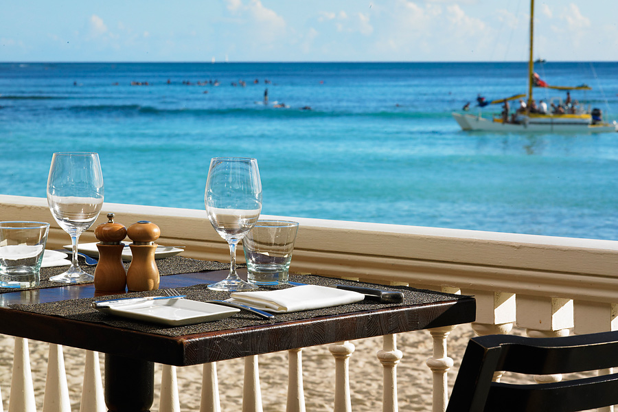 「モアナ・サーフライダー・ウェスティン・リゾート&スパ」の中にある、有名レストラン「ザ・ベランダ」。目の前に広がるワイキキビーチの景色を眺めながら、一流ホテルの料理を味わう時間は、まさに贅沢の極み!