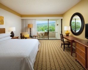 ハワイアンスピリッツを大切にするハワイ島出身のデザイナー、シグ・ゼーンのファブリックアートを取り入れたゲストルームは、南国リゾートらしい明るさと爽やかさで満ちています。この雰囲気と共に最大限の寛ぎを提供するのはシェラトン特製の「スイート・スリーパーベッド」。カスタムメイドのマットレス、ソフトなベッドカバー、高級ピローのすべてが整い極上の眠りへと誘います。