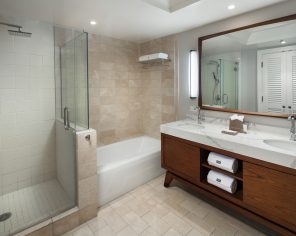 なだらかな斜面に建つホテルはほとんどのゲストルームがハプナビーチに面しており、ラナイから美しい眺めを望むことが。2018年にすべての客室のリノベーションが完了しており、とても快適。自然素材を使用したファニチャーや温もりを感じるファブリックはハワイの豊かな自然を彷彿とさせリラックス。また、ゆったりした広さのバスルーム、独立したシャワーブースは嬉しいポイントです。