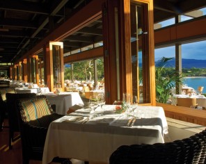 フレッシュな地元素材を使い、五感を刺激するメニューを提供するダイニングはどれもユニーク。メインダイニングの「マンタ&パビリオンワインバー」はエキシビションキッチンで調理の様子をライブで見ることが。さらにエノマティック社製のマシーンでワインテイスティングを楽しめるサプライズも。