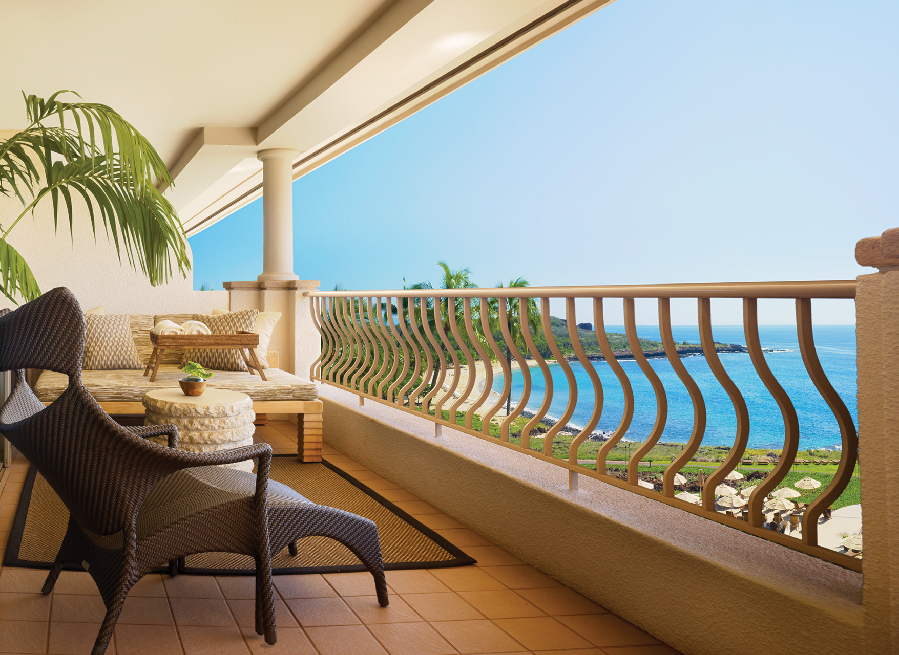 アオウミガメやハシナガイルカといった希少生物が生息する海洋保護区域に隣接するホテル「フォーシーズンズ リゾート ラナイ アット マネレ ベイ」。ターコイズブルーの美しい海と白砂のビーチ、赤銅色の火山崖が印象的なビーチフロントリゾートには、太平洋を一望するワールドクラスのゴルフコースも。広々としたロビーには東洋の美術品がいたるところに飾られ、ラグジュアリーな空間が広がります。