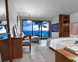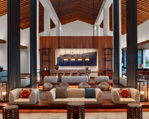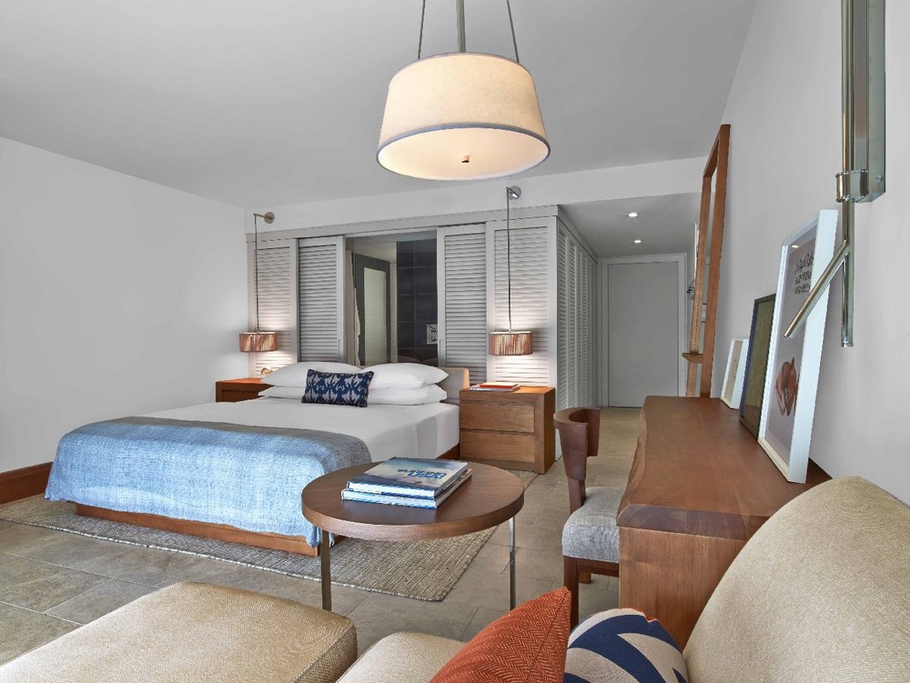 マウイ島ワイレア地区のモカプビーチ沿いに位置する15エーカーのリゾートには、スイート33室を含む全室290室の客室とヴィラ7棟を連ねる施設があり、なかでも環境性能の向上を目的とした計画に基づいて建築・デザインされたホテルは、LEED認証(環境性能評価システム)を取得。木の家具やインテリアがホテルのいたるところに配置され、温かみのある雰囲気を醸し出しています。