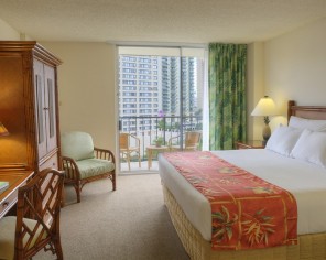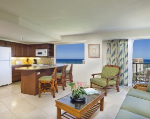 ホテルとコンドミニアムの良さを兼ね備えたコンドホテルで、「ホテルルーム」のほかに、「キチネット付きステューディオ」「フルキッチン付き1ベッドルームスイート」「フルキッチン付き2ベッドルーム2バススイート」があります。キチネットには2口コンロ、フルキッチンには4口コンロが付いており、調理をすることも自在です。