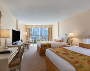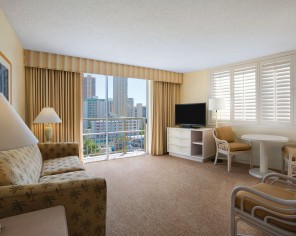 お手頃な「スタンダード」をはじめ、街を一望する「ワイキキビュー」、簡単な調理ができるキチネット付きの「スタジオキチネット」のほか、ベッドルームとリビングが独立したスイートタイプのお部屋も1ベッドルーム、2ベッドルームとあるので、カップルや友人同士、ファミリー、グループなど幅広い層が利用することができます。