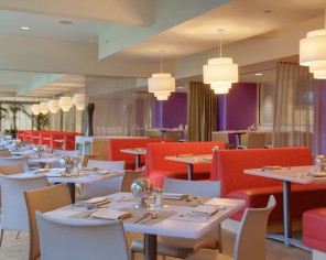 ホテルの中にはモダンアメリカ料理レストラン「マック24/7」があります。年中無休24時間オープンでいつでも食事ができるので、早く出発しなくてはいけない朝や遅く帰ってきた夜にも便利。メニューはエッグベネディクトやロコモコなどのほか、巨大なパンケーキも。その大きさは直径約30㎝でレストランの名物メニューに。