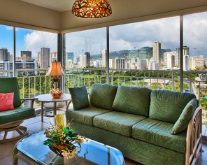 全てのユニットが公園側に向いているので、オーシャンビュールームからはワイキキビーチの絶景や、金曜日の夜に行われる花火を遮るものなく楽しむことができます。