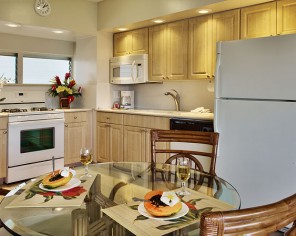 キッチンで食事を作って広いラナイで朝食を楽しんだり、買ってきた食材を温めたりと別荘気分で過ごせるのも魅力。室内に洗濯機&乾燥機を備えているので、長期滞在者やファミリーにも好評です。