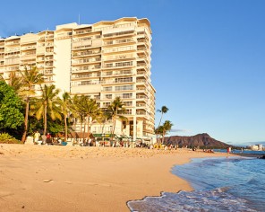 フォート・デ・ルッシー・ビーチ公園のすぐ隣に佇むワイキキ唯一のオン・ザ・ビーチ・コンドミニアム「キャッスル・ワイキキ・ショア」。ワイキキ・ビーチ・ウォークはすぐそばにあり、メインストリートのカラカウア大通りへも1ブロック。