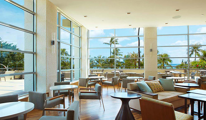 朝食やカクテルタイムなど時間帯にあわせてドリンクや軽食を無料でいただけます。