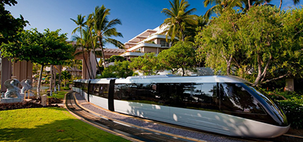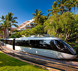移動も楽しいスーパーリゾート 広大なリゾート内の移動はなんとスイス製トラムと運河を渡るボート! まるでテーマパークを訪れたような興奮と感動があります。