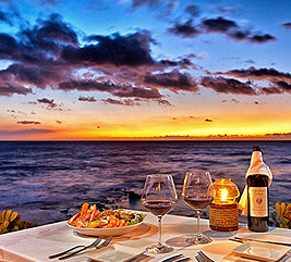 カムエラ・プロビジョン・カンパニー トロピカルドリンクを味わいながら、太平洋を染めるすばらしいサンセットを堪能された後は、地産地消のハワイ・リージョナル・キュイジーヌとステーキ&シーフードに舌鼓を。大切な方との特別なディナーにもぴったりの空間です。