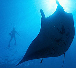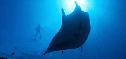マンタと一緒に泳ぐナイトシュノーケルツアー 「シェラトン コナ リゾート & スパ アット ケアウホウ ベイ」は、マンタを間近に感じられる珍しいホテルとしても知られています。2m近い巨大なマンタが海を悠々と泳ぐ姿は圧巻です。