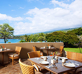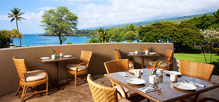 ここでは、毎朝新鮮なフルーツやジュース、ワッフル、オムレツなど、豊富なメニューを揃えた朝食ビュッフェをご用意。ハワイ島のコナコーヒーと共に美味しいブレックファーストをご堪能ください。