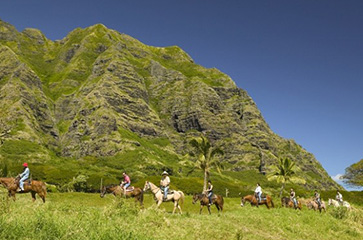 オアフ島の北東に位置する大自然に囲まれたアクティビティ・センター「クアロア・ランチ」で、大人気の乗馬など多彩なアクティビティを楽しめる1日コース。