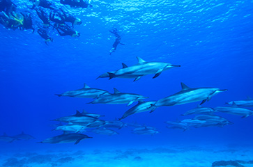 ハワイの海に棲んでいる人懐っこいイルカたち。イルカと一緒にハワイの海を満喫。