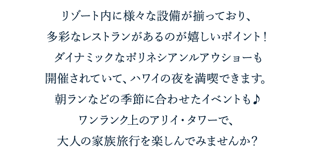 マジックとともに迫力あるポリネシアダンスが披露され、大人も子供も見ていて釘付けになり楽しめるエンターテイメントショーとして構成されています。