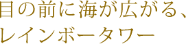 レインボータワーは、カップル、ファミリー、シニアなど様々なお客様のニーズに対応するバラエティに富んだお部屋が多数。また、高性能のエレベーターがあり、お部屋階数を入力するとどのエレベーターへ乗れば早くその階へ行けるかを教えてくれるのでとても便利です。