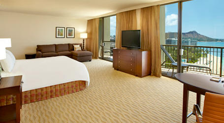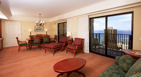 このレインボータワーのジュニアスイートは2つの広々としたラナイからは太平洋、デューク・カハナモク・ラグーンとヨットハーバーの素晴らしい景色をご堪能いただけます。