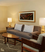リゾート&オーシャンビューの広々としたジュニアスイート。広大なリラクゼーションエリア、ソファベッド、快適な座椅子のご用意された屋外ラナイも快適にお過ごし頂けます。