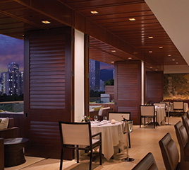 ワイオル・オーシャンビュー・ラウンジ 豊富で多彩なメニューはシンプルなタパス・スタイルで始まります。公園の先に臨むワイキキの海は落ち着いた印象のホテルにあったレストラン。バーカウンターではホテルならではの落ち着いた雰囲気を体感頂けます。