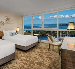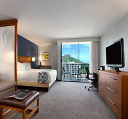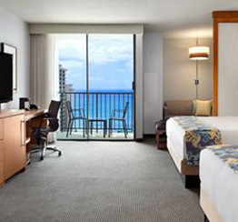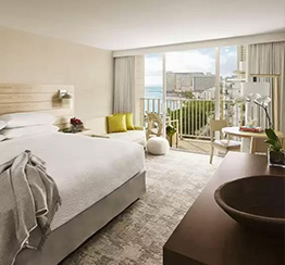 115億ドルの資金が注入され、革新的な再開発が行われた「アロヒラニ・リゾート・ アット・ワイキキビーチ(旧パシフィック・ビーチ・ホテル)」。すべてのゲストルームとスイートルーム、ロビーにある280,000ガロンのオーシャナリウムを含むホテル館内全域が新しい概念のもとトータルリニューアルされました。ビーチまで約25秒の立地も魅力。