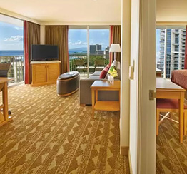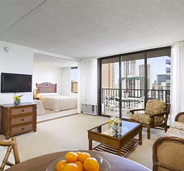 \ファミリー向け/夏特割トランプ・ワイキキ「デラックス・ステューディオ・オーシャンビュー3名1室」6日間(送迎付)特別な時間を優雅な部屋で♪選べるバリューOP追加OK♪