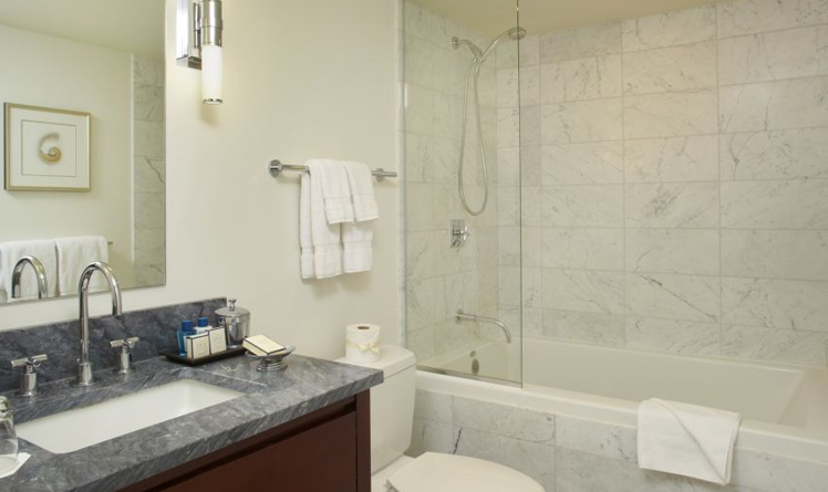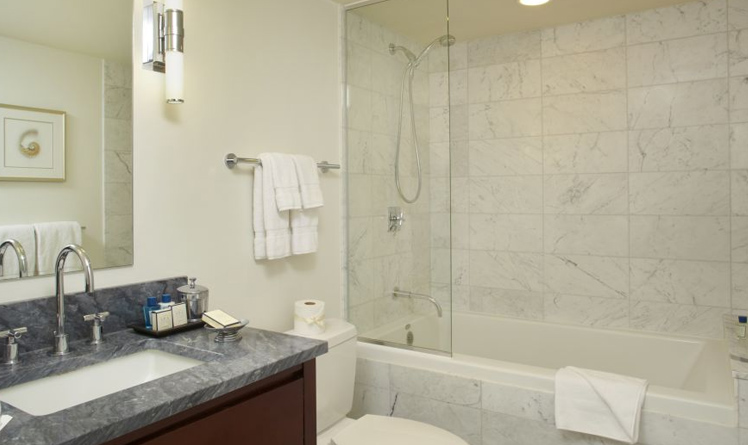 - イタリア製大理石の深めのバスタブを備えた広々としたバスルーム