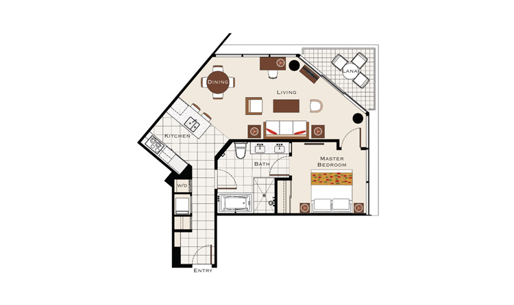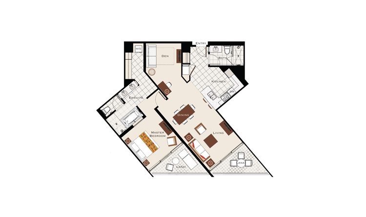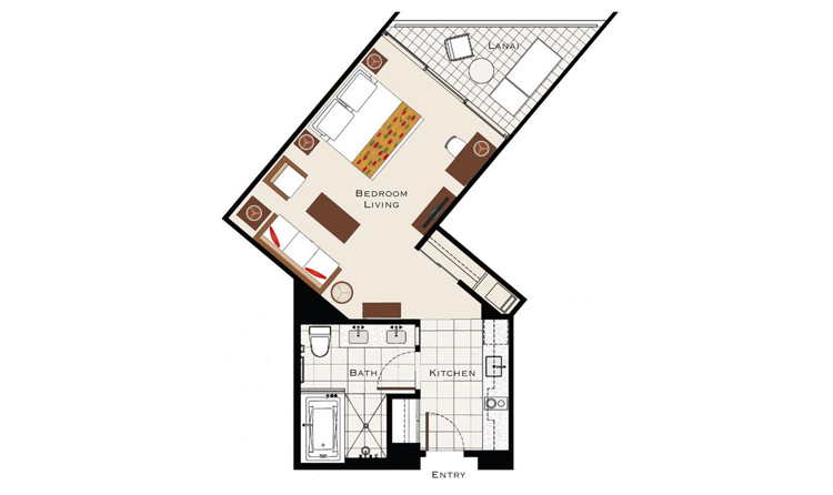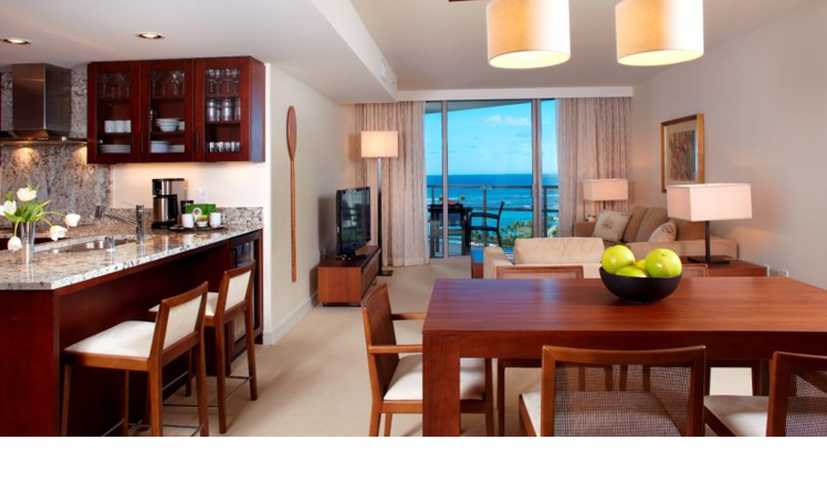 全462室のお部屋は、高級家電を完備したキッチンや洗濯乾燥機、エンターテインメント機器など、「暮らすように」ハワイをお楽しみいただける、快適さを追求したつくりに。どのお部屋も広く様々な部屋タイプがあるので、お二人からご家族、グループ、三世代旅行など、お客様のニーズに合わせてお選びいただけます。