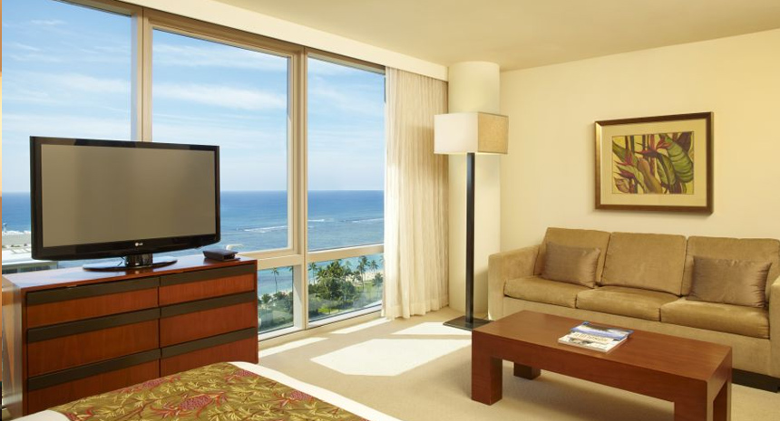 最高の贅沢を楽しめるスイートで、眼前に雄大な太平洋が広がるお部屋です。コオラウ山脈や海、スカイラインを一望できます。エグゼクティブならではの優雅で洗練された調度品や高級家電など、充実の設備が揃っています。