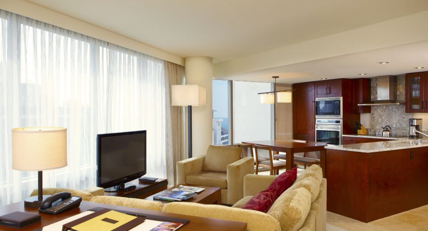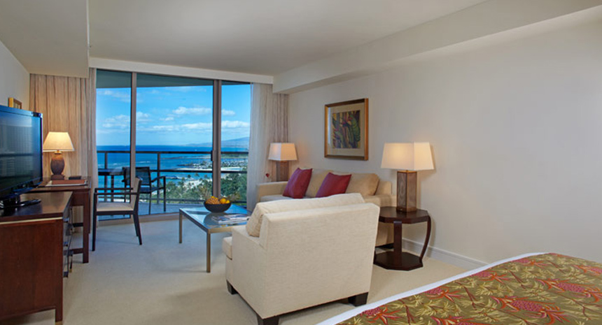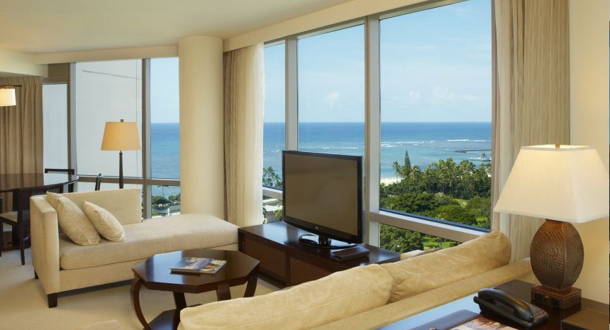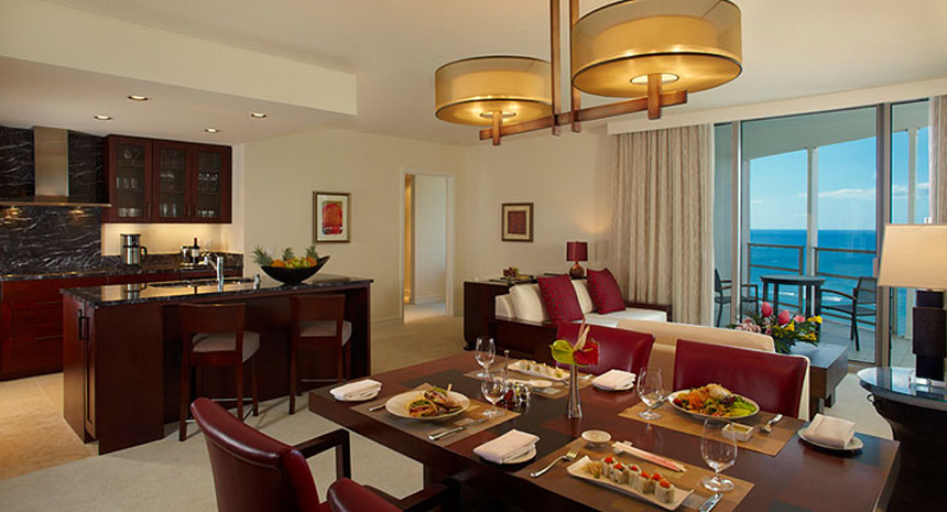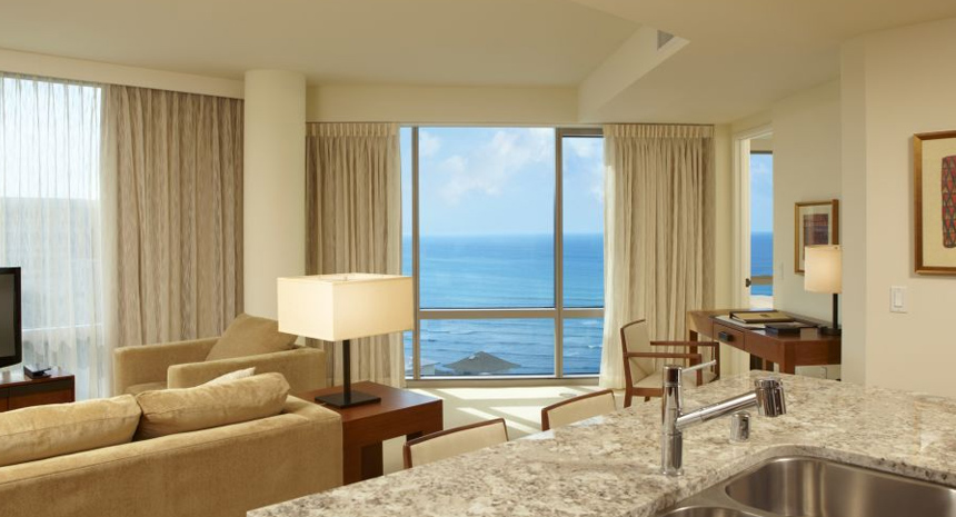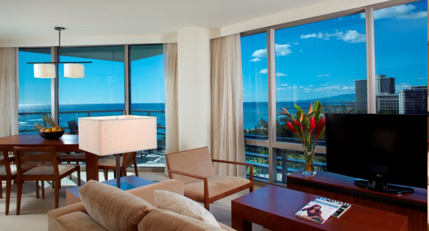 約130平米の贅沢なスペースに、エグゼクティブならではの優雅で洗練された調度品が揃うお部屋です。雄大なコオラウ山脈や太平洋、ホノルルのスカイラインを一望できます。家族旅行や友人同士でも旅行など、独立したベッドルームやリビング、ダイニングルームがあるため、プライバシーを保ちつつお寛ぎいただけます。