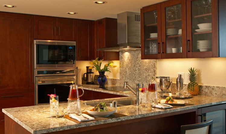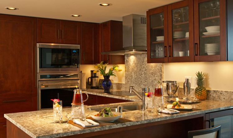 - WolfやSub-Zero製の高級家電、各種の調理用具、食器など設備の充実したキッチン(一部の客室は別仕様)