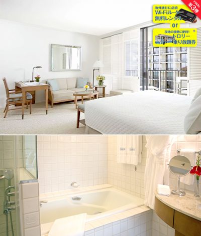 お部屋は海は見えませんが雄大なオアフの自然が見渡せる「シーニックビュー」へのご宿泊となります。広さもラグジュアリーに相応しい約51平米の室内に、一流の設備が揃っています。