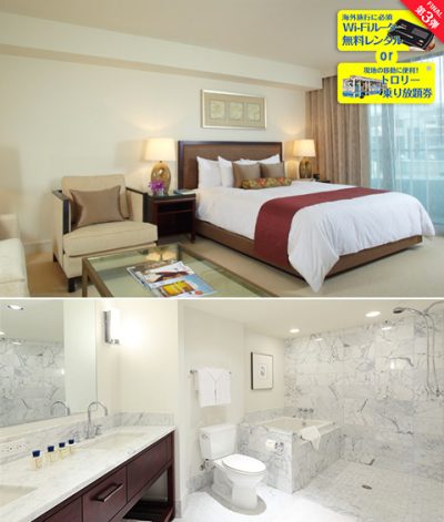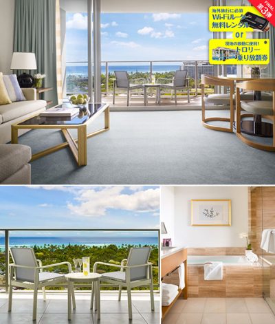 キャンペーンの内容は、「デラックス・1ベッドルーム・オーシャンビュー・スイート」へのご宿泊が緊急入荷プライス!となり、さらにホテル内各ショップやルームサービスでご利用頂ける$100分のルームクレジットが贈呈される、ここでしかご利用頂けない特別なものとなっております!