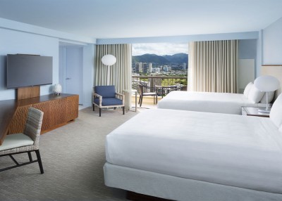 ワイキキ中心部にそびえ立つ、背の高いツインタワーが印象的な