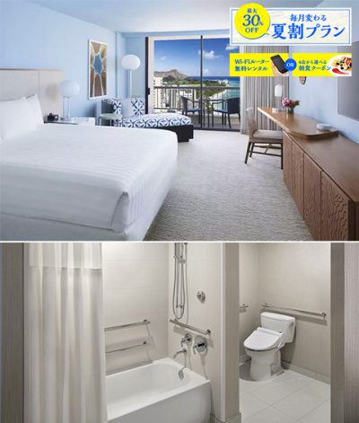 もちろんそれだけではありませんよ♪ご宿泊頂くお部屋もこだわっています!せっかく名門4ツ星ホテル「ハイアット・リージェンシー・ワイキキ・リゾート&スパ」へご宿泊いただくので、ワンランク上の海の見えるお部屋を弊社通常ご宿泊料金から約30%オフとなる夏割を適応して、ご用意しております!