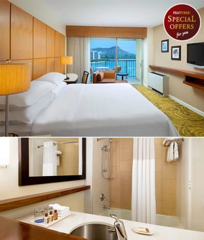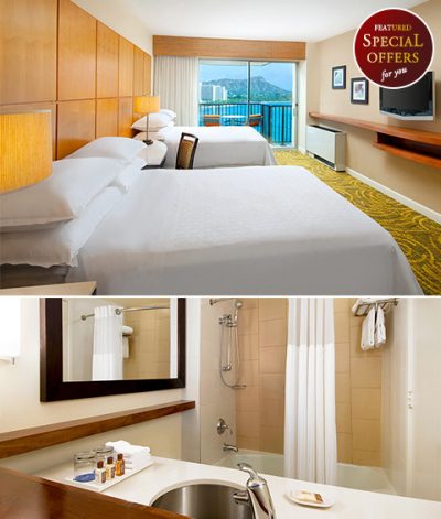 ホテル正面玄関側、中~高層階に位置するパーシャル・オーシャンビューのお部屋では、ラナイ(バルコニー)から美しい海や街の眺望をお楽しみいただけます。 ゲストルームには、キングベッド1台またはダブルベッド2台(シェラトン・シグネチャー・ベッド)、事務机、留守録機能付き室内電話、ワイヤレスインターネット接続(Wifi)、ケーブルTV、映画チャンネル、コーヒーメーカー、バス用品一式、エアコン、室内セーフティーボックス、そしてパーシャルオーシャンビューのプライベート・バルコニーが完備されています。お部屋の広さは約26平方メートルです。- このハワイツアーの概要 -