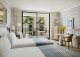 芝の緑が美しいガーデン(中庭)とエメラルドグリーンの太平洋を一部分ご覧いただけます。